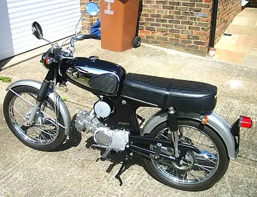 The Honda Sport 90, Super 90, or S90, is a motorcycle produced by Honda from 1964 to 1969.[1] The Sport 90 was based on the Honda Super Cub and uses an 89.6 cc (5.47 cu in) single-cylinder OHC air-cooled engine.