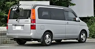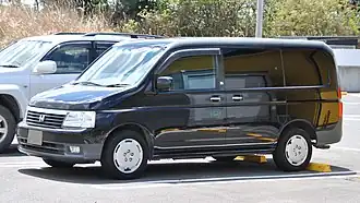 The Honda Stepwgn (Japanese: ホンダ・ステップワゴン, Hepburn: Honda Suteppuwagon; pronounced "step wagon") is a minivan produced by Honda since 1996. In contrast to the Odyssey and also the Stream, it sports a taller, more upright greenhouse and can accommodate eight people instead of seven. For its first two generations, the car had one door on the driver's side and two doors on the passenger's side.