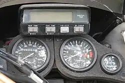 The later XRV's instruments feature a large trip computer LCD display mounted above the conventional speedometer and tachometer, styled like Dakar racers' navigational displays, and incorporates a range of extra electronic timers and trip meters.[11]