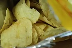 Honey Butter Chips (Korean: 허니버터칩) is a brand of fried potato chips manufactured by Haitai Calbee and sold in South Korea. The snacks were first made available in August 2014, and they are renowned for their rise to popularity through social media viral marketing from late 2014 to early 2015. The product was created by Korean confectioner Haitai in a joint effort with Japanese snack manufacturer Calbee. This snack was so popular that it created a trend called the Honey-Butter Craze among South Koreans.[1]