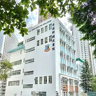 22°16′26″N 114°10′18″E / 22.2739°N 114.1716°E / 22.2739; 114.1716Hong Kong Tang King Po College (Chinese: 香港鄧鏡波書院) is a Catholic male-only secondary school in Hong Kong. It is located in Wan Chai District. It was founded by the Salesians and Sir Tang King Po in 1965.