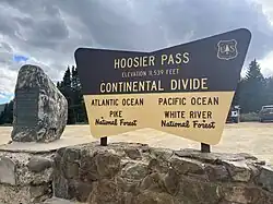 Hoosier Pass (elevation 11,542 ft (3,518 m)) is a high mountain pass in central Colorado, in the Rocky Mountains of the western United States. The name derives from the Hoosier Gulch, which was worked by men from Indiana, nicknamed the "Hoosier State".[2][3]