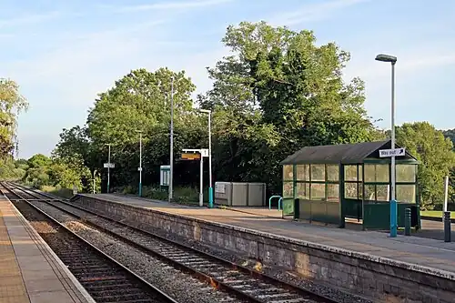 Hope railway station serves the village of Hope in Flintshire, Wales. The station is 5+1⁄4 miles (8.4 km) north of Wrexham Central on the Borderlands Line. The name of the station in Welsh is Yr Hôb.