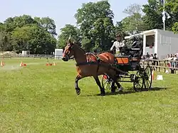 In the 1990s, a wave of enthusiasm for the leisure horse accompanied the return to the land of neo-ruralists.[158] This created a rift with traditional breeders. The 1996 ban on tail docking for draft horses was seen as heresy by some farmers.[159] Driving for sport and leisure is gaining in importance.[160] The Haras National d'Hennebont is transformed into a cultural center designed as an open-air museum. The Haras National de Lamballe became more involved, pursuing a policy of supporting leisure breeding, much to the chagrin of Breton beef horse breeders.[161] A new generation of non-agricultural breeders is acquiring Breton horses with a view to conserving the breed and using them for leisure.[162]