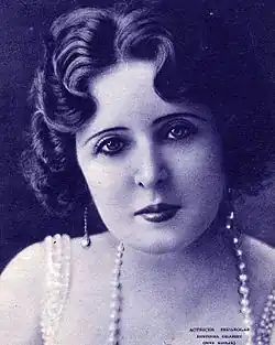 However, her larger successes came from her work as a stage actress. In 1910 she appeared at Madrid's Comedia Theatre in the premier of Genio y figura, a three-act comedy about an aging seducer, by Carlos Arniches (and others).[2] The next year she joined the María Guerrero theatre company, starring in a rapid succession of premiers that included El alcázar de las perlas (1911) by Francisco Villaespesa, El rey trovador (1911) by Eduardo Marquina, Primavera en otoño (1911) by Gregorio Martínez Sierra, Doña Desdenes (1912) by Manuel Linares Rivas, La marquesa Rosalinda (1912) by Ramón del Valle-Inclán and El delito (1915) by Luis Fernández Ardavín and the young Federico García Sanchiz.[2]