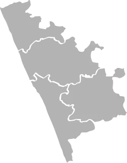 Hosdurg is one of four taluks that constitute the Kasaragod District, Kerala. Others are Kasaragod, Manjeshwaram and Vellarikundu taluks.[2] In the north, it borders Kasaragod taluk; in south, the Kannur District; in the east, Vellarikundu taluk; and in the west, the Arabian Sea. With an area of 900.3 km2 (90030 hectares), it was the smaller of the two taluks.[3] Then Hosdurg bifurcated into Vellarikund and Hosdurg taluks in 2013 for ease of administration.[4] Kanhangad and Nileshwaram are the municipalities within the taluk. Hosdurg (after which the taluk is named) is a kilometer south of Kanhangad town, the latter being the taluk headquarters. Other major settlements include Trikarpur, Cheruvathur and Udma. Bekal Fort tourism is situated in the taluk.