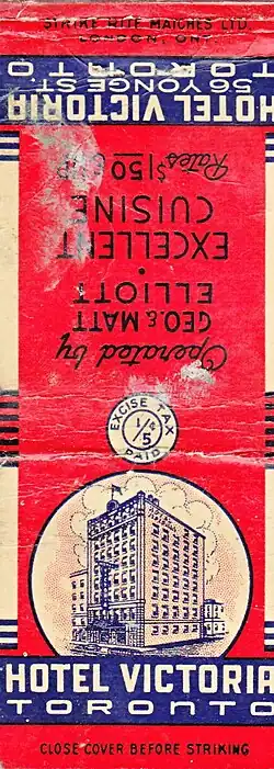 - ^ Sadler, Joan (April–May 1986). "Hotel Victoria: a historical site just right for today". Ontario Innkeeper.