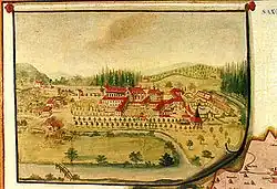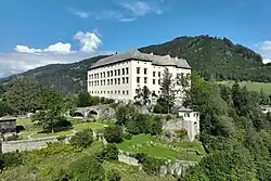 In 1599, the Schwarzenbergs were elevated to Imperial Counts, and the family was later raised to princely status in 1670.[1] In 1623 came the Styrian Dominion of Murau into the Schwarzenberg family due to the marriage of Count Georg Ludwig of Schwarzenberg (1586–1646) with Anna Neumann von Wasserleonburg (1535–1623). Furthermore, the House of Schwarzenberg acquired extensive land holdings in Bohemia in 1661 through a marriage alliance with the House of Eggenberg. In the 1670s, the Schwarzenbergs established their primary seat in Bohemia and, until 1918, their main residence was in Český Krumlov, Bohemia (now in Czech Republic).