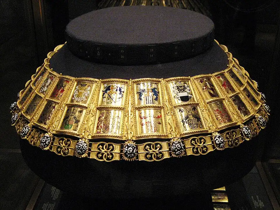 The Distinguished Order of the Golden Fleece is a Catholic order of chivalry founded in 1430 in Bruges by Philip the Good, Duke of Burgundy, to celebrate his marriage to Isabella of Portugal.