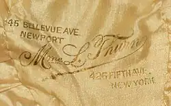 In the 1890s, Thurn benefited from the increasing preference of wealthy Americans for Parisian fashions.[12] The firm continued to grow and by 1889 it employed a large staff of trimmers, drapers, finishers, and other specialized workers who were supervised by a forewoman.[13] Its workforce in 1900 was 175 employees of all types.[14] One source says that Thurn attracted society clients during this period, including members of the Rockefeller and Mellon families.[15]