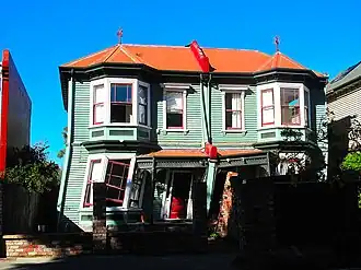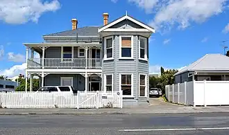 Houses from this period are divided into cottages and villas. The first houses built in New Zealand were cottages.[20] Villas were the larger and more expensively built equivalent. The typical villa has the kitchen to the rear of the house and separate from the dining room, as food preparation was meant to occur out of sight.[21] Villas were the main form of housing in residential areas from after 1840 up to World War I.[22]