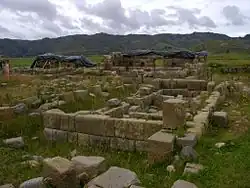 Huánuco Pampa,[1][2][3] Huánuco Marka[3][4] (also spelled Huánuco Marca)[1] or Huánuco Viejo,[1][3] Wanako Pampa, Wanuku Pampa or simply Huánuco is a large archaeological site in Peru in the Huánuco Region, Dos de Mayo Province, La Unión District. The ruins of the city lie on a plateau above the Urqumayu or Vizcarra River in the central Andes.[5] The Incas administered their large empire through a small number of administrative centers, such as Huánuco Pampa. The administrative centers were linked by the extensive Inca road system. The most important of the roads, the Qhapaq Ñan, which ran from Cusco to Quito, passed through Huánuco Pampa. The Inca authorities in Huánuco ruled at least five, and perhaps more, ethnic groups.[6] The city is situated on an important commercial trade route and sits on top of a plateau with ravines on all sides in order to allow easy defense of the city. During the Spanish conquest of the Incas, Huánuco Pampa was briefly occupied by Gomez de Alvarado,[7] who founded a Spanish city but it was quickly moved to Pillco[8] because of the harsh climate of Huánuco and the raids of Illa Tupac, one of the captains of Manco Inca.