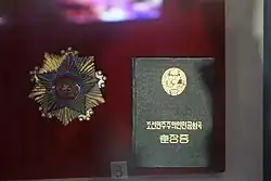 Huang was posthumously given the title of "Combat Hero, Second Class",[2] which was later upgraded to "Combat Hero, Special Class". The North Korean government also awarded Huang with the title of "Hero of the Democratic People's Republic of Korea", a Gold Star Medal and the Order of the National Flag (First-Class).[3]