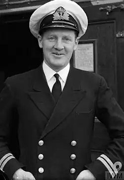 ![]() Lieutenant Hugh Mackenzie, Commander of HM Submarine Thrasher in 1942. Taken on board the submarine depot ship HMS Medway. | |