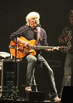Hugues Jean Marie Auffray (French pronunciation: [yɡ ʒɑ̃ maʁi ofʁɛ]; born 18 August 1929), better known as Hugues Aufray, is a French singer-songwriter and guitarist. He is known for French-language covers of Bob Dylan's songs. Aufray knew Dylan and his work from his time in New York City,[1] as well as from record shops, and his translations capture the rawness of the original songs.