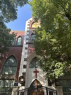 During the Cultural Revolution (1966–1976), all church activities in Shanghai halted, and Red Guard students of Wu'ai School took over the church site.[2][3] The church building collapsed after the Cultural Revolution, and was rebuilt in 1996.[4] The rebuilding completed in 1997. The rebuilt structure has three and a half floors. The first and second floors, which can contain about 500 people, are for worship services. The third floor has an occupancy of 300 people, and can also be used for worship services.[5] In October 2018, the church hosted a half-day bazaar to raise funds for poor and sick children.[6]
