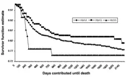 Detailed study of a cohort of 1022 Kenyan children living near Lake Victoria, published in 2002, confirmed this prediction.[67] Many SS children still died before they attained one year of age. Between 2 and 16 months the mortality in AS children was found to be significantly lower than that in AA children. This well-controlled investigation shows the ongoing action of natural selection through disease in a human population.
