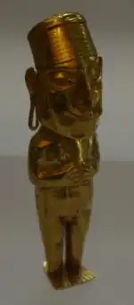 The Timoto–Cuica people worshiped idols of stone and clay, built temples, and offered human sacrifices. Until colonial times, children were sacrificed secretly in Laguna de Urao, Mérida. This was chronicled by Juan de Castellanos, who described the feasts and human sacrifices that were done in honour of Icaque, an Andean prehispanic goddess.[17][18]