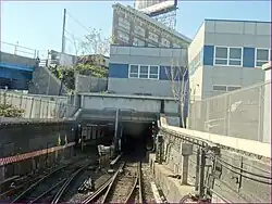 This station is the easternmost (railroad north) underground station on the Flushing Line until the northbound terminal station (Flushing – Main Street). The tunnel portal is at the eastern end of the station. Just outside the portal is a diamond crossover linking the two tracks.[12]
