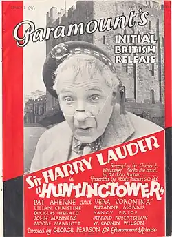 Huntingtower is a 1928 British silent adventure film, made at Cricklewood Studios. It was directed by George Pearson and starred Harry Lauder, Vera Voronina and Patrick Aherne. It was based on the 1922 novel Huntingtower by John Buchan. The film was fairly successful on its release.[2]