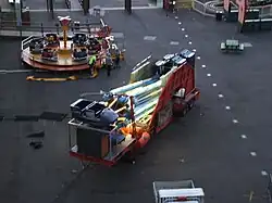 The ride racks onto a single 48-foot (15 m) trailer, and can be assembled by two people in just over two hours.