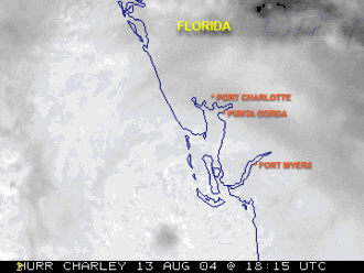 ![]() Charley near peak intensity shortly before landfall in Florida on August 13 | |