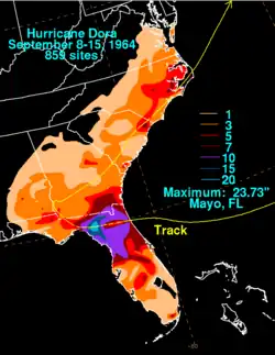 - ^ a b Hurricane Dora, September 9–12, 1964. U.S. Weather Bureau (Report). National Hurricane Center. 1964. Retrieved November 28, 2015.