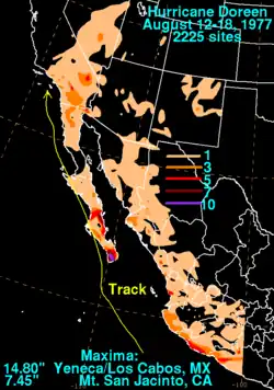 - ^ a b c d e Roth, David (October 14, 2008). "Hurricane Doreen - August 12-18, 1977". Hydrometeorological Prediction Center. Retrieved August 11, 2011.