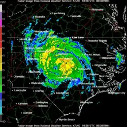 By August 29, flood watches were in effect for eastern South Carolina and eastern and southern North Carolina.[13] On August 30, flood warnings were issued for portions of central Virginia, and tornado watches were put into effect for parts of southeast Virginia and northern North Carolina.[14] In Charlotte, North Carolina, an estimated 30 National Guard soldiers were activated to assist in helping in flooded areas.[15]