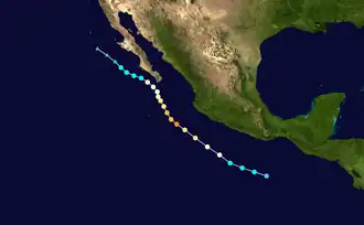 | Areas affected | Southwestern Mexico, Socorro Island, Baja California Peninsula, Southern California |