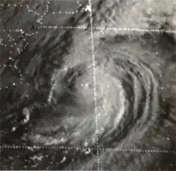 Hurricane Gladys was the farthest tropical cyclone from the United States to be observed by radar in the Atlantic basin since Hurricane Carla in 1961.[1] The seventh named storm and fifth hurricane of the 1975 Atlantic hurricane season, Gladys developed from a tropical wave while several hundred miles southwest of Cape Verde on September 22. Initially, the tropical depression failed to strengthen significantly, but due to warm sea surface temperatures and low wind shear, it became Tropical Storm Gladys by September 24. Despite entering a more unfavorable environment several hundred miles east of the northern Leeward Islands, Gladys became a Category 1 hurricane on the Saffir–Simpson hurricane wind scale on September 28. Shortly thereafter, the storm reentered an area favorable for strengthening. Eventually, a well-defined eye became visible on satellite imagery.