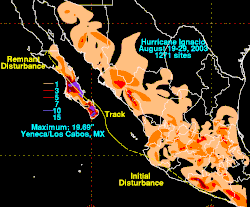 - ^ CNN (2003-08-26). "Hurricane Ignacio stalls, dumps rain on Baja". Retrieved 2007-01-17.