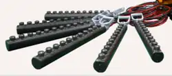 The darda splitters consist of two wedges which are inserted in a pre-drilled hole and a hydraulic cylinder driven by a hydraulic power pack.