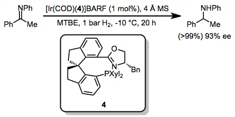 - ^ Spindler, Felix; Pugin, Benoit; Blaser, Hans-Ulrich (1990). "Novel Diphosphinoiridium Catalysts for the Enantioselective Hydrogenation of N-Arylketimines". Angewandte Chemie International Edition in English. 29 (5): 558–559. doi:10.1002/anie.199005581.
