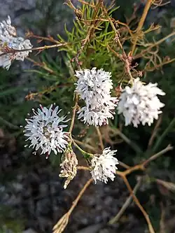 Hymenothrix wrightii is a perennial herb up to 60 cm (2 feet) tall. One plant produces 6-8 flower heads per stem, in a flat-topped array. Each head has 15-30 white, pink, or pale purple disc flowers but no ray flowers. The individual disc flowers are larger and showier than in many other species in the family.[6][7][8]