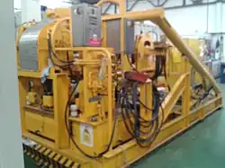 A hyperbaric reception facility, or hyperbaric rescue facility, is a unit which allows for connection of hyperbaric lifeboats and hyperbaric rescue capsules for transfer under pressure. It is a basic saturation diving accommodation facility which will not be used to support diving operations, and is usually modular and portable so the components can be moved to a suitable venue and assembled for standby with the hyperbaric rescue vessel (HRV). The facility is usually set up at a convenient port where the hyperbaric rescue vessel can berth to unload the hyperbaric evacuation unit, but in remote locations can be carried onboard the HRV.[3]
