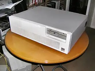 The model 5363 was positioned as a replacement for the 5364, and was announced in October 1987.[10] It used a deskside tower style enclosure like that of the 5362, but was only 2/3 the size. It featured updated hardware using newer, smaller hard drive platters, a 51⁄4" diskette drive, and a revised distribution of the SSP.