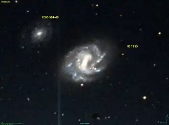 IC 1953 is a barred spiral galaxy situated in the constellation of Eridanus. Located about 83.4 million light years away,[2] it is a member of the Eridanus Cluster of galaxies, a cluster of about 200 galaxies. It was discovered by DeLisle Stewart in 1899.[3]