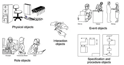 - Interaction Objects: Interaction objects are the result of interactions or transactions between two or more objects.