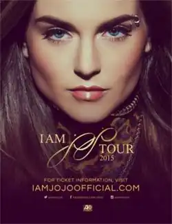 In an interview with Billboard.com at the 2015 MTV Video Music Awards on August 30, 2015, JoJo expressed plans to go on a nationwide tour before heading overseas in 2016 for further promotion.[10] On October 5, 2015 JoJo announced her second major nationwide tour entitled The "I Am JoJo Tour" via her official Twitter page. The tour will visit 23 cities all across North America beginning on November 2 at Minneapolis’ Triple Rock Social Club and runs through the end of the year, wrapping up on JoJo's 25th Birthday on December 20 at the Hi Ho Lounge in New Orleans.,[11] making it her widest spread tour to date. The tour will visit smaller more intimate venues such as theaters & nightclubs as a way to reconnect with fans after so long. During an interview with AXS JoJo discussed what plans she had for the tour stating "For this tour, I wanted to take a journey back to the beginning, back to my first album where ‘Leave (Get Out)’ came from. I wanted to visit the second album, The High Road, which had 'Too Little Too Late.' And, I wanted to cover the mixtapes that I released while I was in that period of limbo. I'll be doing everything, right up to the tringle and I'll even do a couple of new songs that will be on the upcoming album".[12][13] On October 26, 2015 JoJo officially announced that Aaron Camper would be serving as the opening act for the duration of the tour beginning on November 3, 2015 show.[14][15] On December 14, 2015 JoJo announced the first international tour date for the show in Paris, France, on March 5, 2016. Tickets officially went on sale that same week on December 16, 2015. The next day an additional European date had been announced at the O2 Academy in Islington, London on March 7, 2016. Tickets go on sale December 17, 2015.
