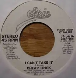 "I Can't Take It" is a song by the American rock band Cheap Trick, which was released in 1983 as the second single from their seventh studio album Next Position Please. The song was written by Robin Zander and produced by Todd Rundgren.[4]