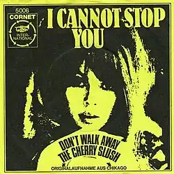 "I Cannot Stop You" is the second single by the American garage rock band, The Cherry Slush, written by Dick Wagner, and released in January 1968 initially on Coconut Groove Records. The song is arguably the group's most known recording, distinguished by the composition's use of the Hammond B3 organ and a horn instrumental played by the session musician, Don Sheets. Recording began at Audio Recorders Studio, in Cleveland, when the band was still working as the Bells of Rhymny. For the track, Gene Bruce swapped lead guitar with the keyboard player Mark Burdick.[1][2]