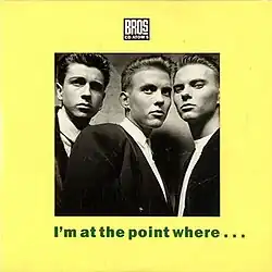 "I Quit" is a song by British pop band Bros, released on 5 September 1988. "I quit" was their fourth track taken from their Debut album, Push. It reached number 8 on the UK Singles Chart.[1] where it spent 11 weeks on the chart selling over 100,000 copies.[2] The single also charted well in france where it spent 11 weeks on the French chart.