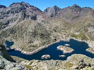 Ibón de Bachimaña Alto and Ibón de Bachimaña Bajo are glacial lakes in the Tena Valley in the Province of Huesca, northeastern Spain, near the border with France. Ibón de Bachimaña Alto, the larger, lies at an elevation of 2,207 metres (7,241 ft) above sea level.[1] It covers an area of 38 hectares (0.15 sq mi).