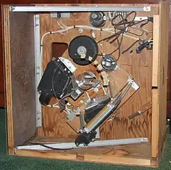 The original fingerprint identification prototype was made mostly from items Mr. Fowler and Mr. Ruby found in Mr. Fowler's garage. The moving parts (cams, drive-trains, rotating spindles, articulated platforms, etc.) were all homemade. Rotation came by cannibalizing old drill motors. Old projection lights and lenses illuminated the ridges and valleys of the fingerprints along the length of the finger one line at a time. The optical elements had to be made from machined and polished plastic, but the structure that housed all the mechanics was built out of wood. By using photosensitive paper and film, the only media available at the time for recording, the result was a machine that could simulate the effects of rolling the finger and capture an entire print without distortion.