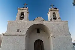 The church of San Francisco de Chiu Chiu was built in the mid 17th century. It is adjacent to the square of Chiu Chiu. In 1965, the Architecture Branch of the Ministerio de Obras Públicas de Chile carried out a renovation project, which included the replacement of the wooden belfries with two stone belfries on the main facade. The first ones, in turn, had replaced the original belfries, which collapsed in the 19th century.[1]