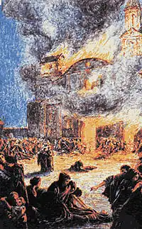 The Iglesia de la Compañía de Jesús Fire (8 December 1863) is the largest fire ever to have affected the city of Santiago, Chile. Between 2,000 and 3,000 people died mostly women, probably the largest number of people to die in an accidental fire in any one building in the world, and even one of the worst building fires of a religious building.[1] The fire originated at the start of a mass which was being held to celebrate the Feast of the Immaculate Conception.