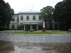 At that time, there were only two religious houses for women in the Philippines: the Beatero de Santo Domingo and Santa Clara Monastery, and they only permitted to admit those of pure Spanish ancestry.[2] Ignacia felt strongly against the Spanish law that prohibited native Filipinos from entering priestly or religious life. The Spanish Mother Jerónima de la Asunción opened the first convent in the Philippines in 1621 but Filipinas could not be admitted. In hopes of changing this racially structured ecclesiastical limitation, Ignacia began to live alone in a vacant house at the back of the Colegio Jesuita de Manila, the Jesuit headquarters. Spiritually assisted by Jesuit Father Pablo Clain she led a life of public prayer and labor which attracted other Filipino laywomen to live with her. She accepted them into her company and, though they were not officially recognized as a religious institute at the time, together they became known as the Beatas de la Virgen María (English: "Religious of the Virgin Mary") living at the Beatería de la Compañía de Jesús (English: "Convent of the Society of Jesus").[1] For their chapel they used the old San Ignacio Church (destroyed in the Second World War) and the Jesuit priests were their spiritual directors.