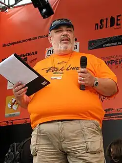 Igor Markovich Gindis (Russian: Игорь Маркович Гиндис, born 8 February 1965) is a Russian journalist, rock musician and actor. He is a presenter of show "Dezhurnyi po gorodu" (Russian: "Дежурный по городу", City Duty) on the TV channel "Rifey-Perm" in Perm Krai, Russia.[1] In 2006, according to the results of a public opinion poll, conducted by the department of sociological monitoring of Perm Krai administration, Igor Gindis led the list of most famous journalists of Perm and Perm Krai. He obtained 22.5% votes in Perm Krai and 35.1% votes in Perm (Anna Vodovatova, his colleague from "City Duty", took the second place in the city and the third place in the krai).[2][3]