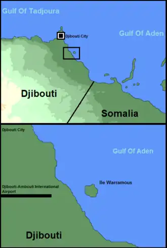 The Ile Warramous Island is a small uninhabited islet about 1.28 kilometres (0.80 miles) east coast of Djibouti in the Gulf of Tadjoura and Gulf of Aden. The island lies near the city of Djibouti. The island is not open for the public with no civil population
